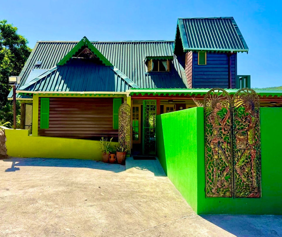 Turtle Point villa, directly above Flamingo villa, is nestled on a lush serene hillside overlooking Princess Margaret Beach, where guests can enjoy complete privacy, unhindered views and fully appreciate the beauty of Bequia through large breezy windows, full length doors opening onto private patios. *